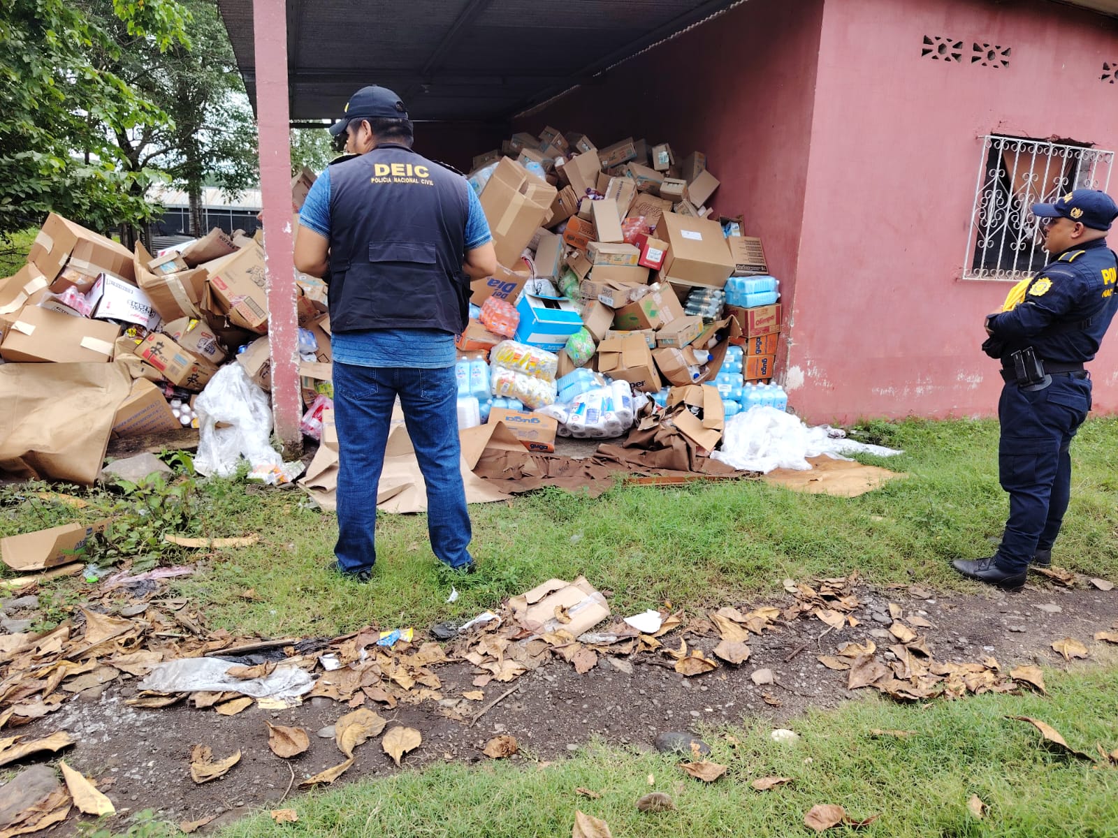 Autoridades recuperaron productos de consumo diario robados en Santa Lucía Cotzumalguapa, Escuintla, durante un allanamiento en la aldea San Pedrito. No hubo capturas.