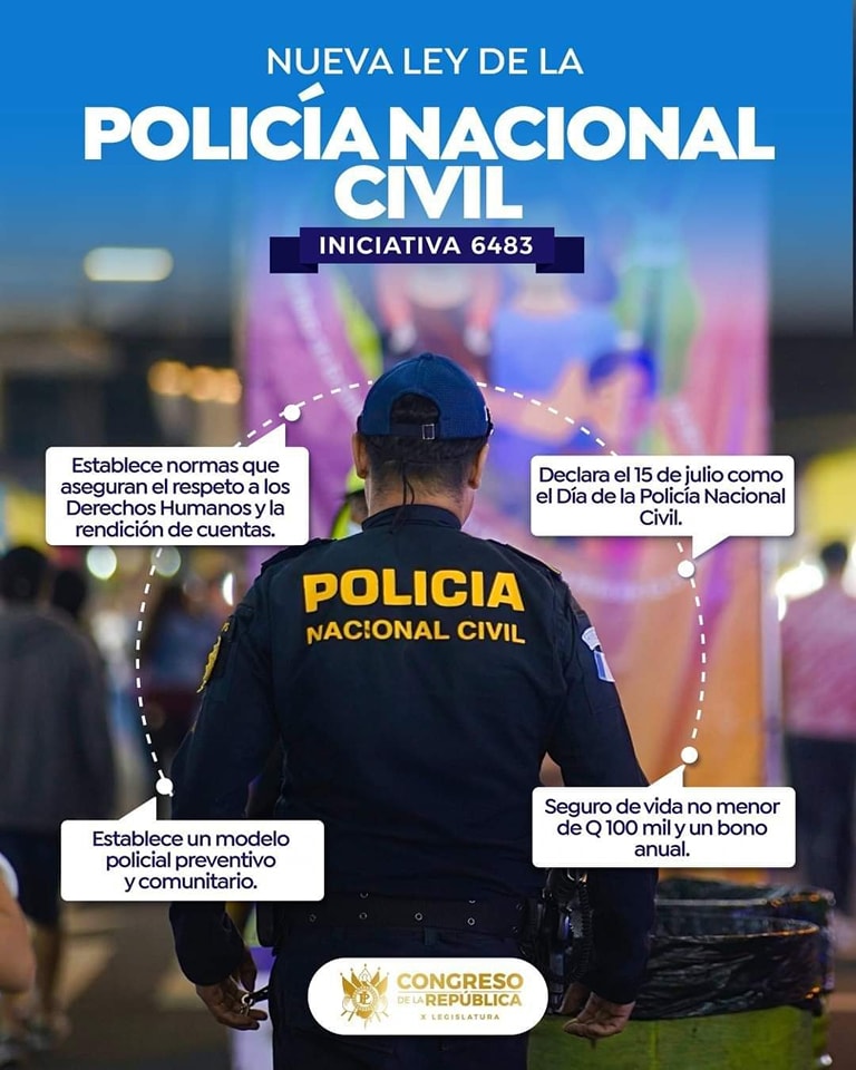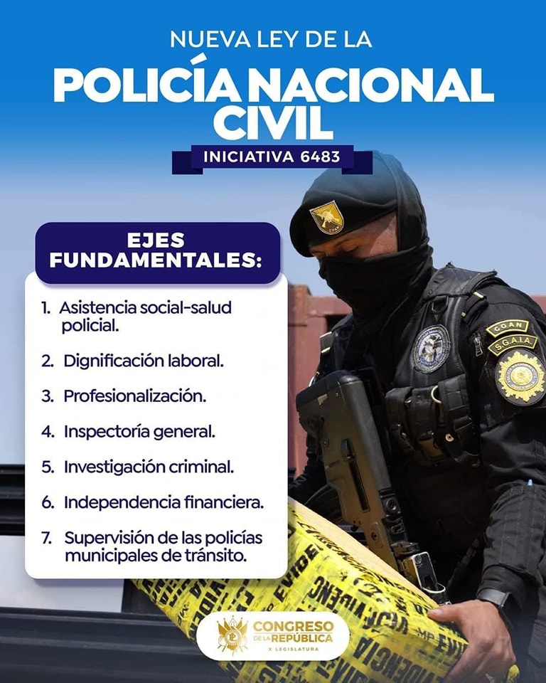 Esta normativa, que deroga el Decreto 11-97 aprobado hace 27 años, tiene como principal objetivo mejorar la estructura organizacional, la gestión de recursos, y garantizar el respeto a los derechos humanos dentro de las funciones policiales. Con 115 votos a favor, la ley fue promovida por el presidente del Congreso, Nery Ramos, y otros legisladores, tras un proceso de consulta que incluyó enmiendas y modificaciones.