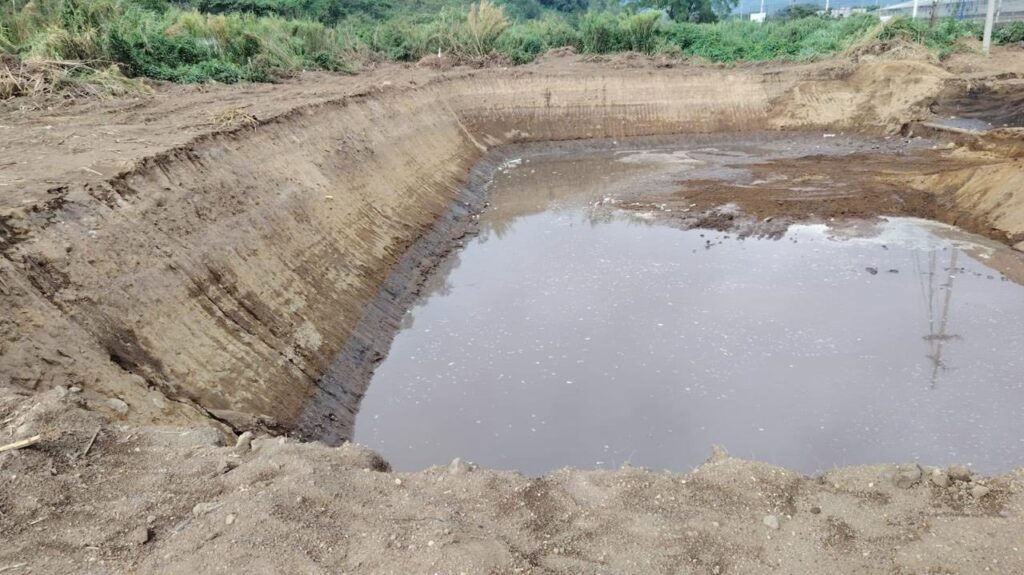 La laguna de retención fue construida para contener el agua que baja desde la montaña y evitar que llegue directamente a la carretera, generando inundaciones. La estructura cuenta con una capacidad de 3,600 metros cúbicos, mide 30 por 40 metros y tiene una profundidad de 3 metros.