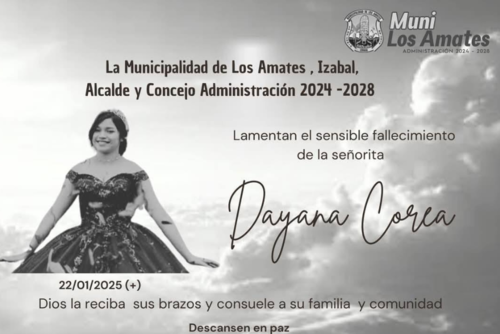 La Municipalidad de los Amates, Izabal y medios de comunicación en Guatemala y otras latitudes han expresado sus condolencias por la muerte de Dayana, realizando distintos homenajes en sus redes sociales. A lo largo de esta nota presentamos algunos de los homenajes.