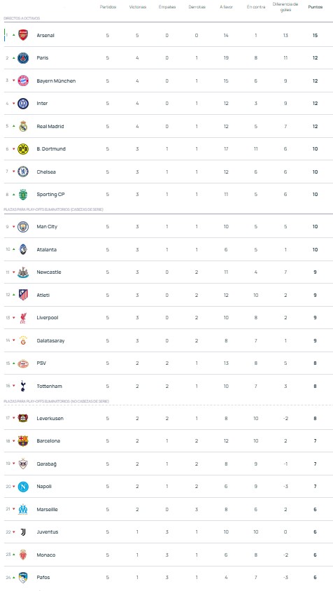 Con la derrota del Liverpool, los «Gunners» se convierten en el único equipo de toda la competición con paso perfecto: 15 puntos de 15 posibles. Arteta ha construido una máquina que, hoy por hoy, es la gran favorita para levantar la Orejona en 2026.