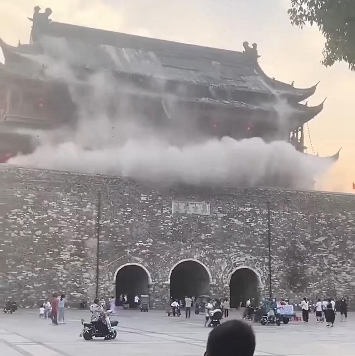 El derrumbe afectó el techo del edificio, del cual se desprendieron cientos de tejas en cuestión de segundos, levantando una nube de polvo y escombros frente a los ojos de turistas que recorrían la plaza. “Fue como ver deshacerse una galleta de arroz al sol”, relató un testigo. Varios videos del momento circularon rápidamente por redes como Weibo, donde el suceso se convirtió en tendencia nacional.