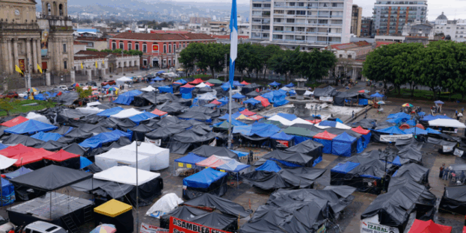 campamento frente al Palacio Nacional de la Cultura.
